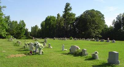 intersection of 213 and 186. Turn right onto County Road 186 and go about ½ mile to the church and cemetery on the left. The cemetery